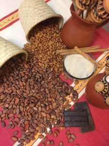 Cacao means “food of the gods” and is indigenous to the region between Chiapas, Mexico and the northern foothills of the Andes. We use organic, sustainable, single-source cacao from this region to preserve the most authentic flavor. The raw cacao beans are lightly roasted and then stone-ground. Unlike with most chocolate products, the cacao shell or cascara is left on the bean, which gives the chocolate its gritty texture. The result is minimally-processed chocolate that retains more of the natural nutritional value and antioxidants.